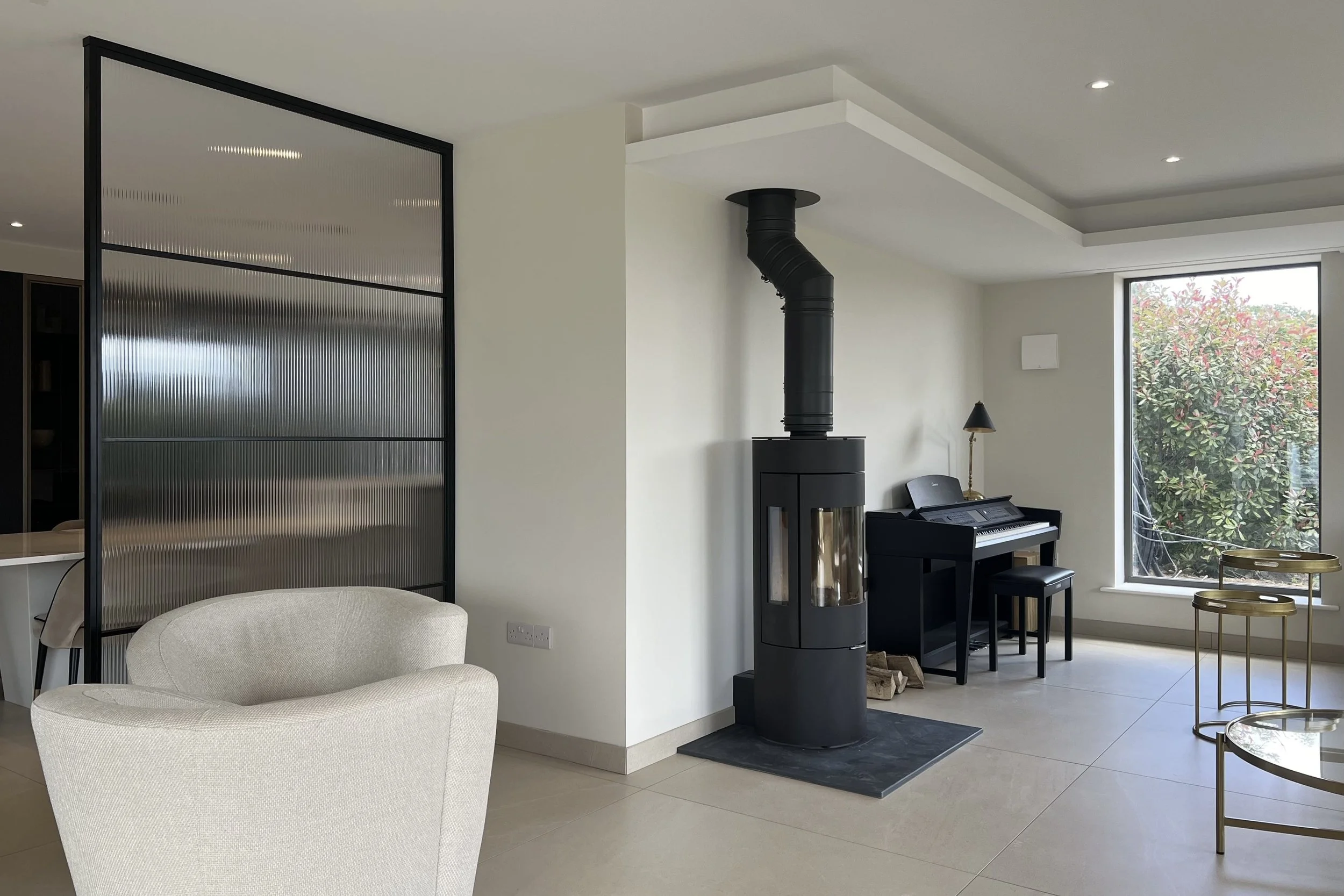 For clients looking to combine aesthetic with function, acoustic glazing is also available. This can be particularly beneficial in spaces such as home offices, media rooms or snug areas where noise reduction enhances usability without interrupting sightlines.