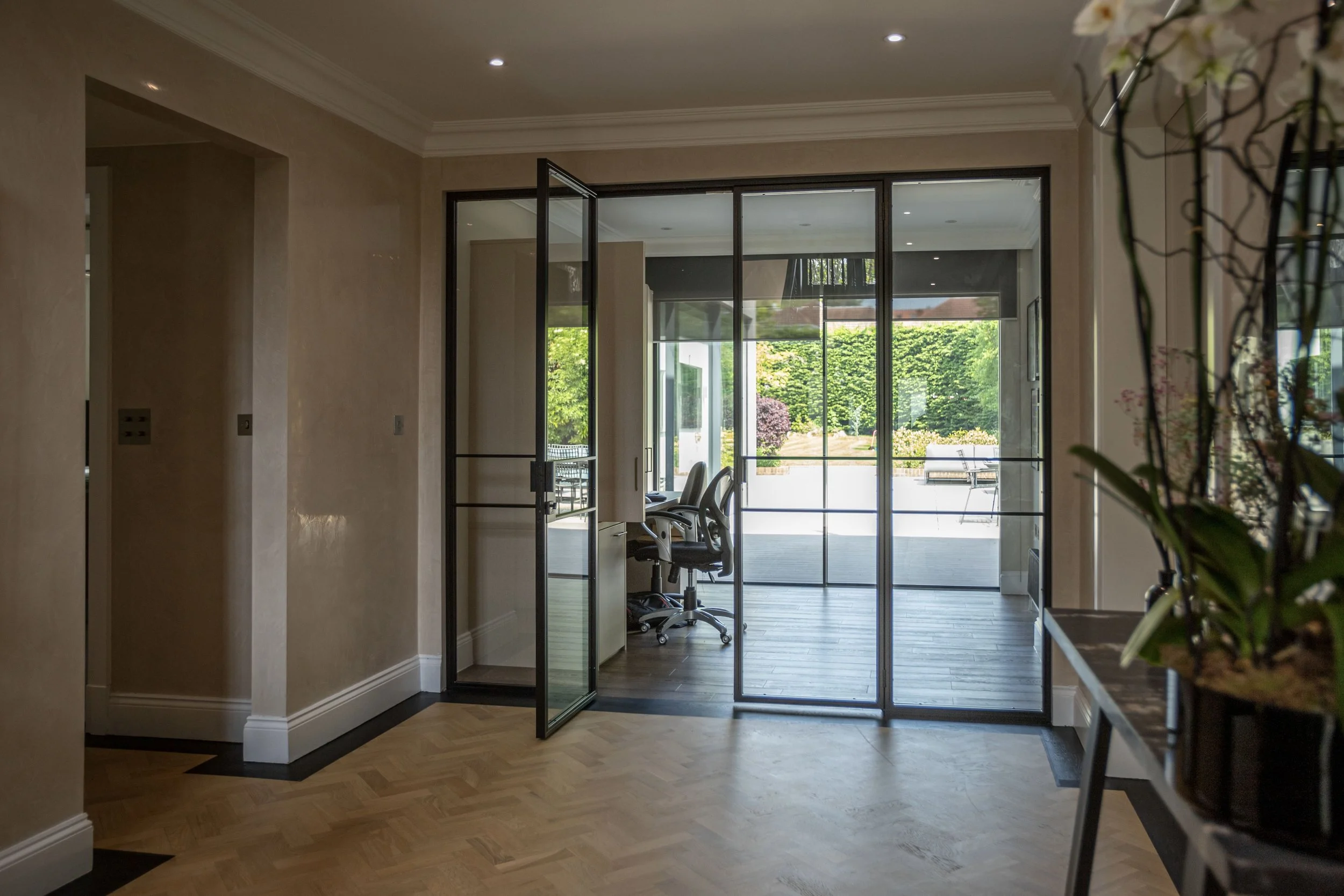 Not every room enjoys direct access to windows. Hallways, snugs, utility rooms, and converted basements can often feel dark and confined. Steel doors solve this by allowing these spaces to borrow daylight from brighter areas of the home.