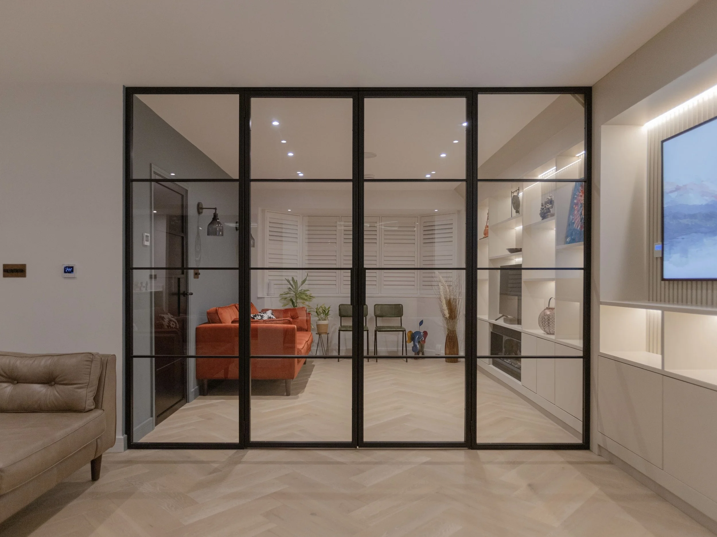 As part of an ultra-modern renovation in Croydon, South London, we were asked to produce and deliver two glazed door solutions that would complement the home’s sleek design while maximising light and maintaining uninterrupted sightlines throughout the space.