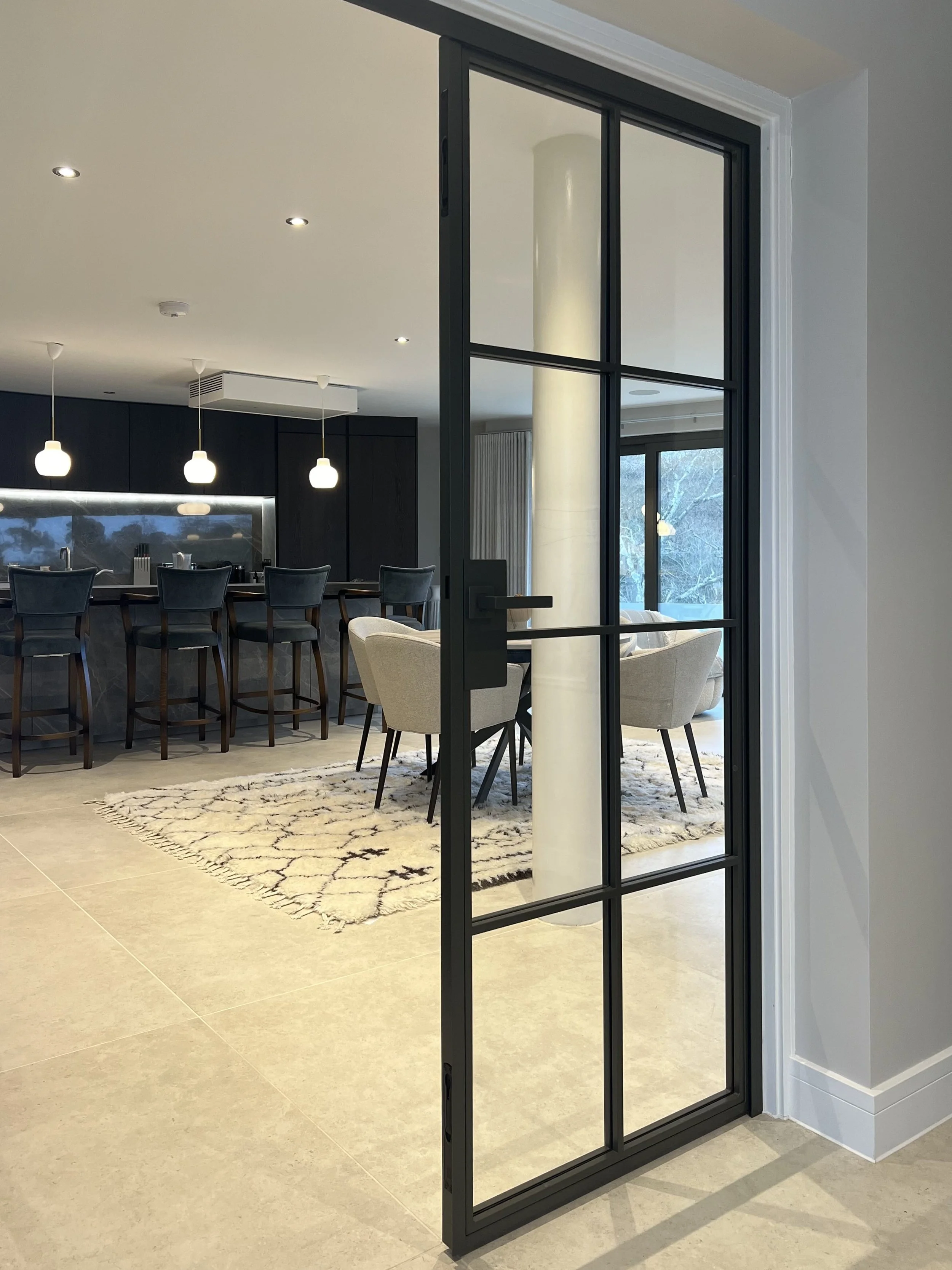 Our client in Poole reached out to us during the renovation of her modern two-storey penthouse apartment, seeking steel-framed internal doors to elevate the contemporary design of the space. With a wrap-around balcony and expansive sea views, the apartment was finished to a high standard and called for a door solution that would reflect the same level of refinement.