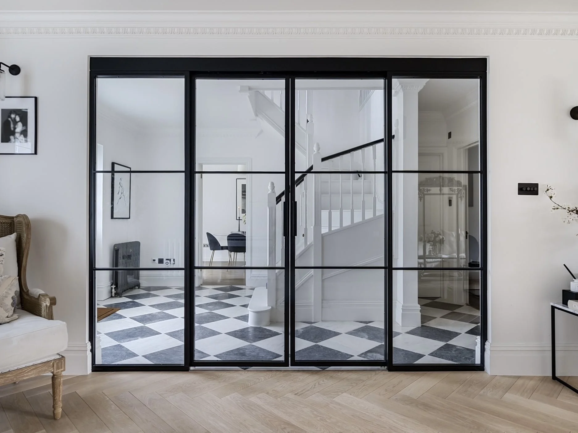 For a client in West Byfleet, we produced a bespoke double sliding door set that delivers both functionality and refined aesthetics within a thoughtfully designed home.