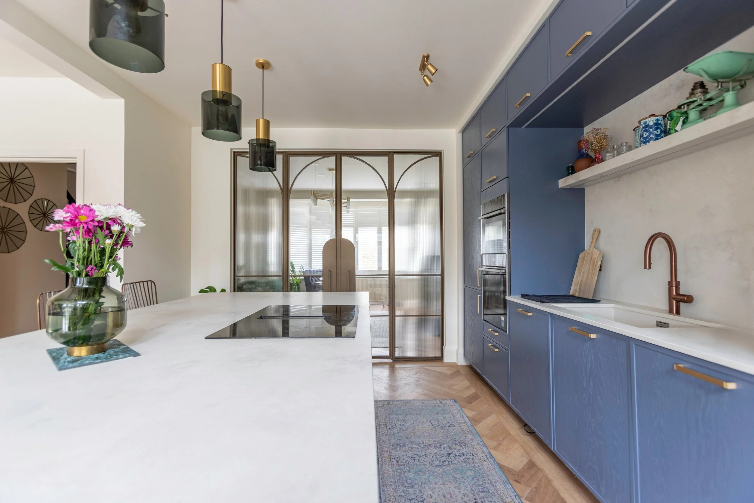 Finished in a sophisticated bronze tone, the door set stands as a true centrepiece within the home, harmonising beautifully with the property’s newly renovated interior. The bronze accents in the kitchen tie seamlessly to the door finish, creating a cohesive and luxurious visual flow throughout the space.